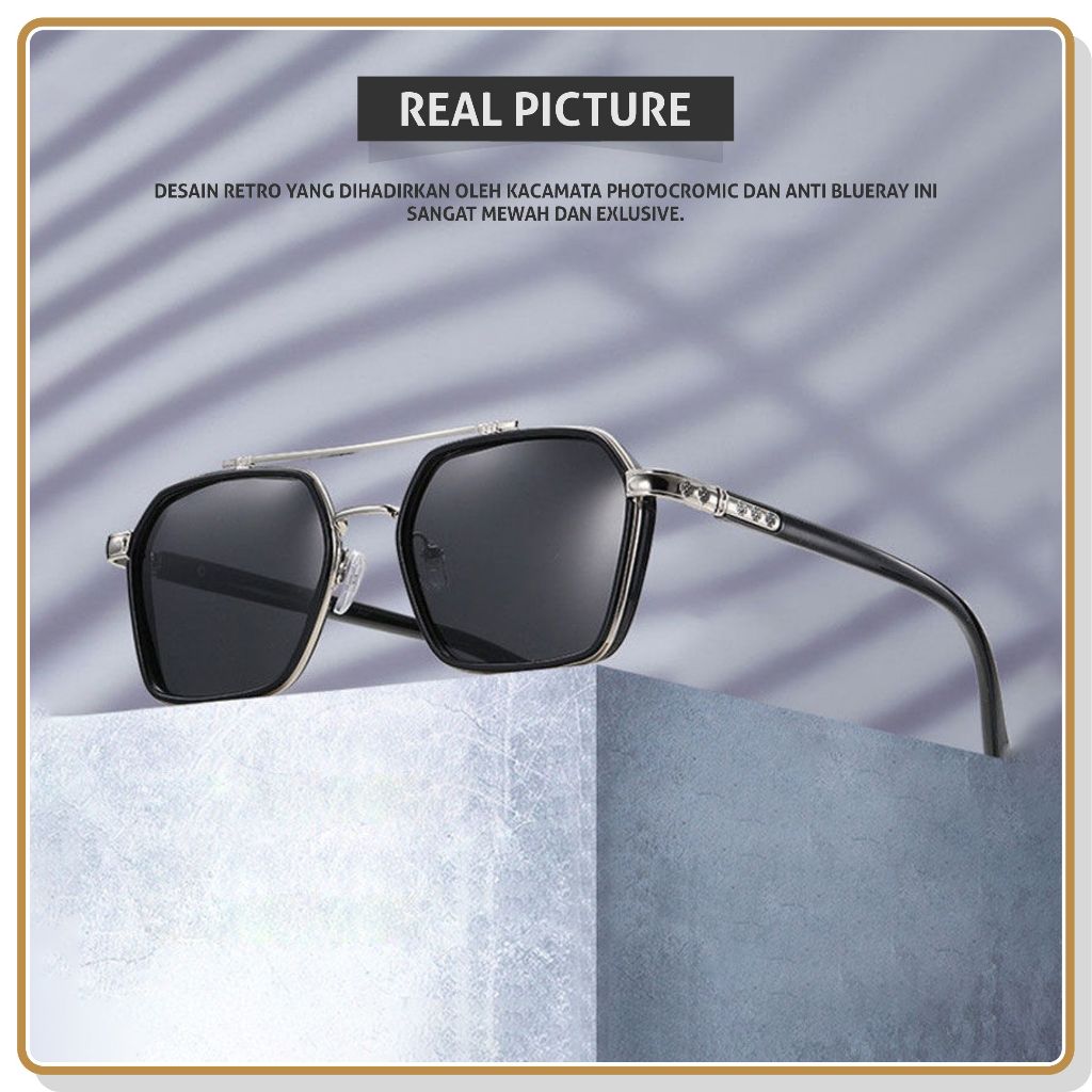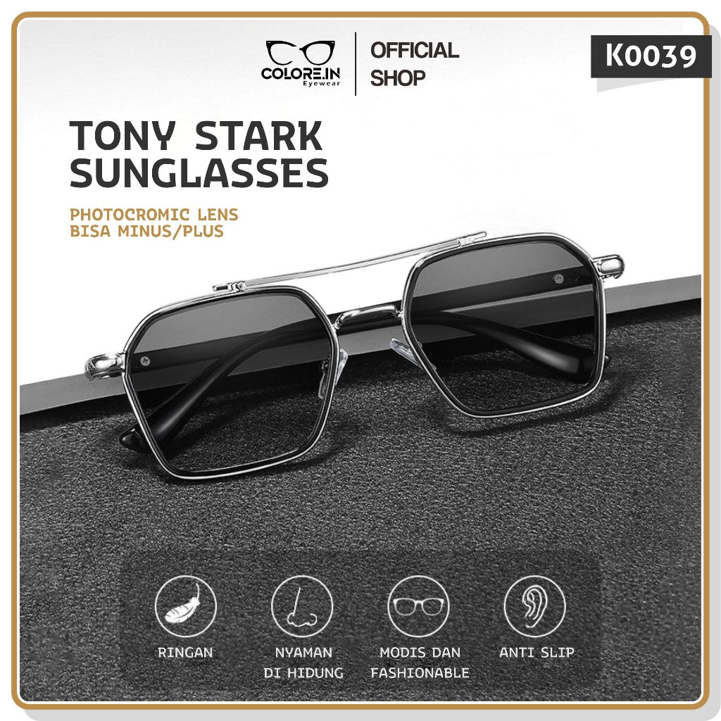 Colore.in Kacamata Tony Stark Photocromic Minus Anti Blueray Radiasi Wanita Pria 2 in 1 Bluecromic Anti Silau Aviator Me
