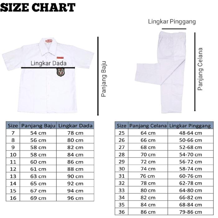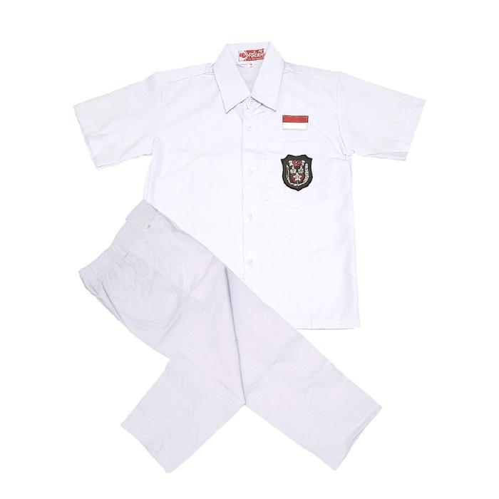 Setelan Seragam Sekolah SD Putih Laki-laki Lengan Pendek Celana Panjang Super Komplit Kelas 1-6 SD