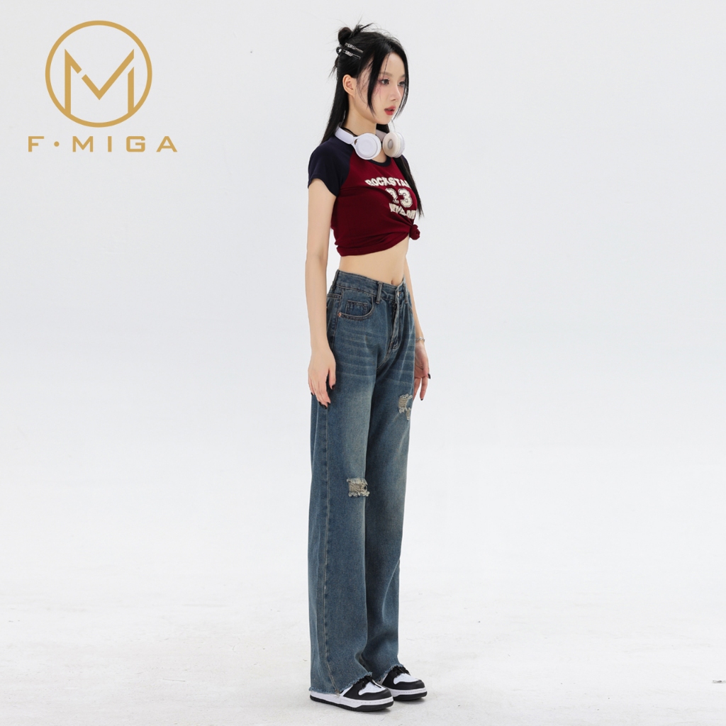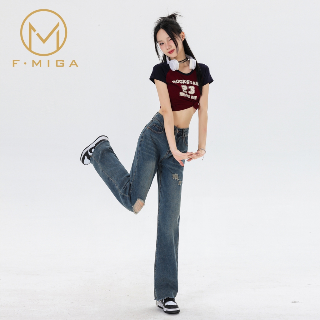 [Mall] Celana Jeans Wanita High Waist Korean Style – Warna Biru Retro, Modis & Nyaman untuk Sehari-hari
