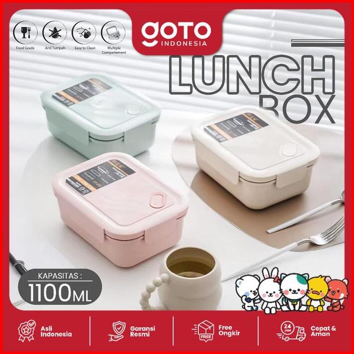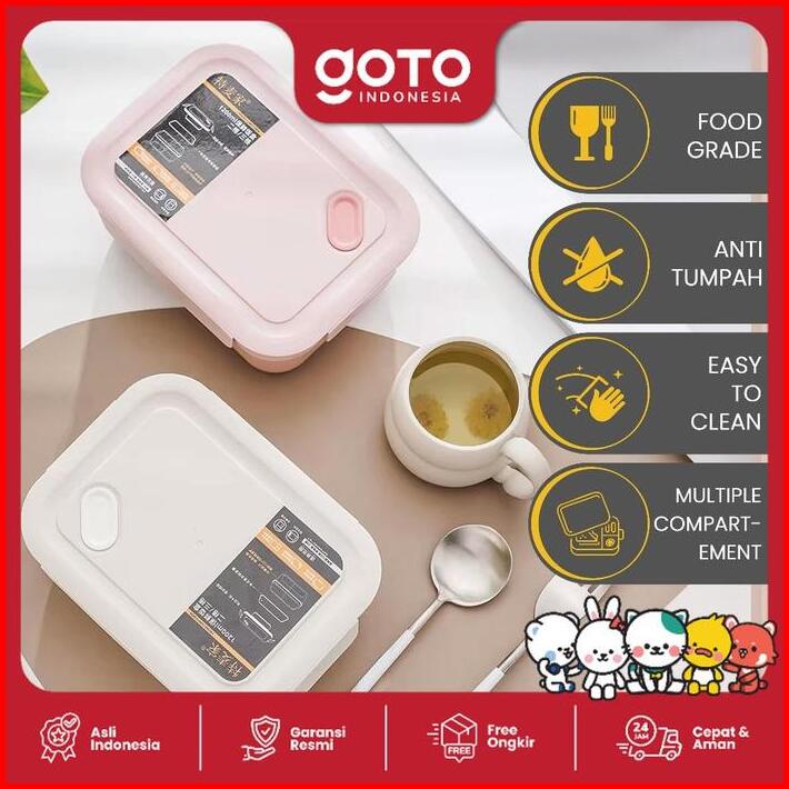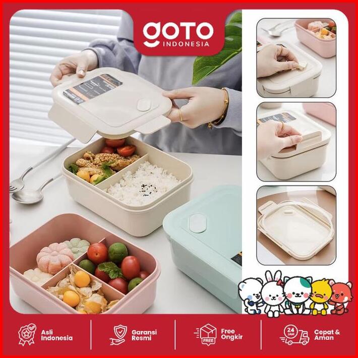 Goto Qino Bento Lunch Box Tempat Makan 3 Sekat Kotak Bekal Anti Tumpah