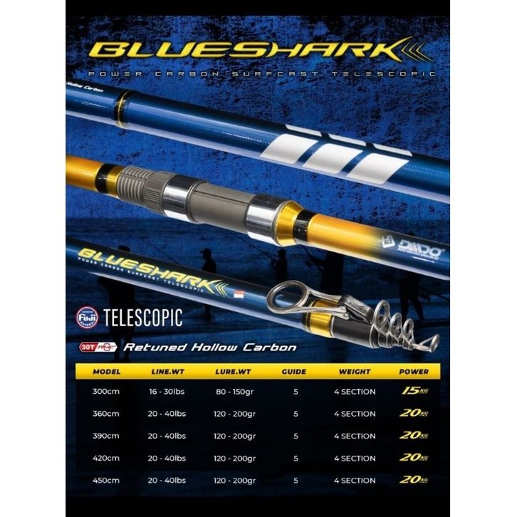Joran Pancing DAIDO Blue Shark 300–450 Antena Surf Pantai Pasiran Super Jauh Lempar Kuat dan Lentur