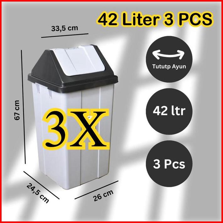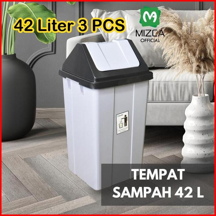 Mizca Tempat Sampah 42 Liter 3 Pcs Haneda Tempat Sampah Plastik Goyang Tong Sampah Tutup Ayun Rubbish Bin