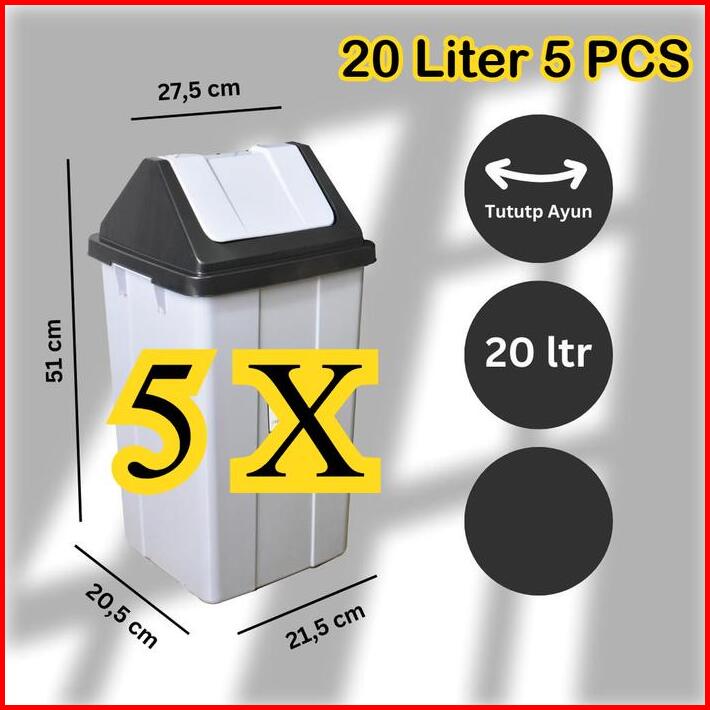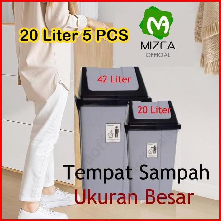 Mizca Tempat Sampah 20 Liter 5 Pcs Haneda Tempat Sampah Plastik Goyang Tong Sampah Tutup Ayun Rubbish Bin