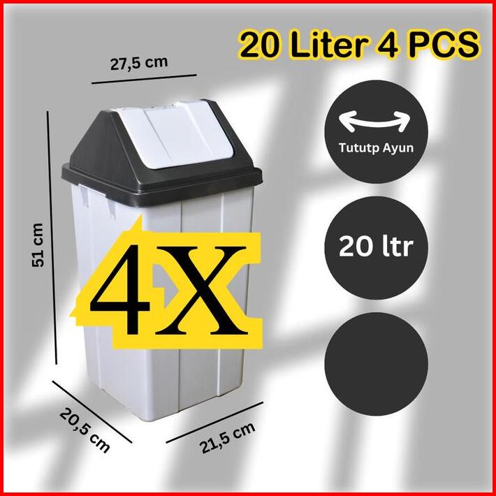 Mizca Tempat Sampah 20 Liter 4 Pcs Haneda Tempat Sampah Plastik Goyang Tong Sampah Tutup Ayun Rubbish Bin