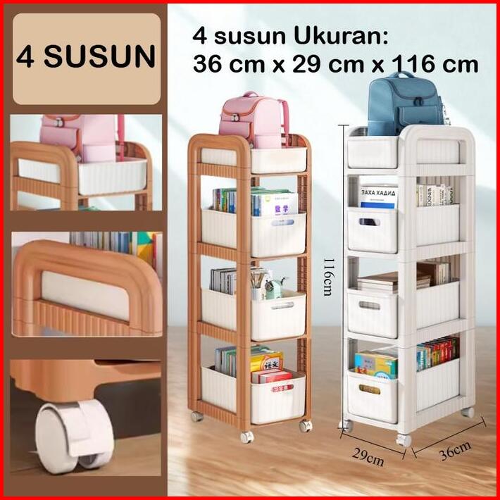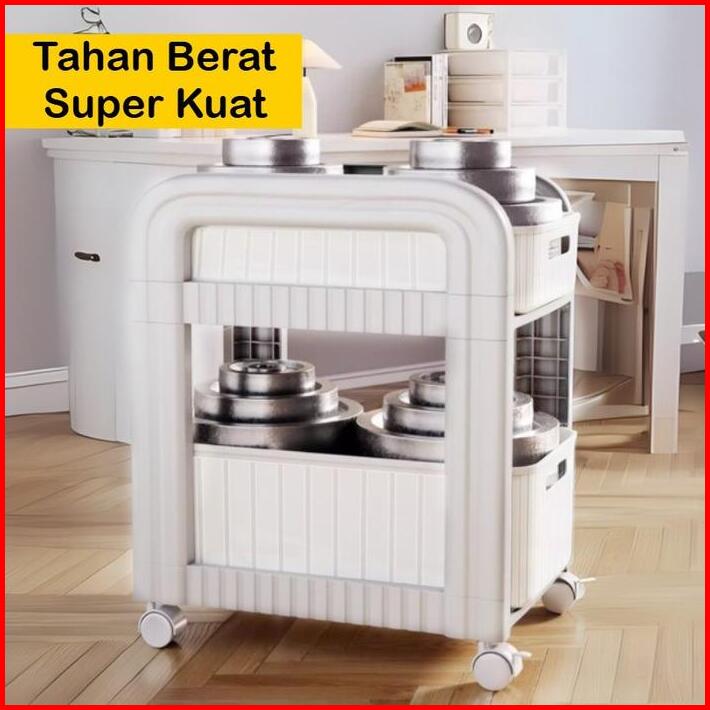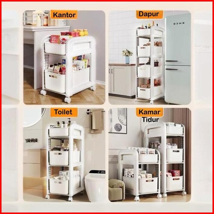 Mizca Rak Troli Laci 4 Susun Kotak Penyimpanan Plastik Serbaguna Roda Rak Lemari Susun Organizer Box Storage