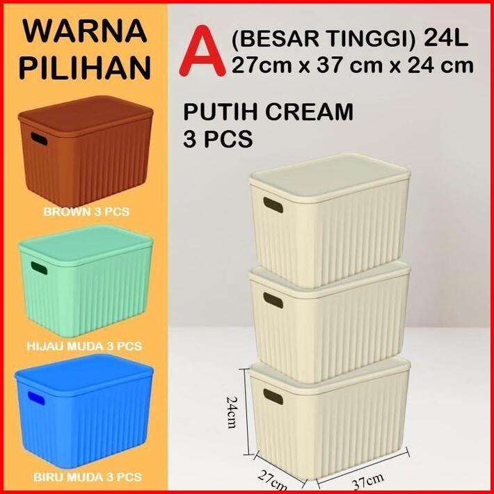 Mizca Kotak Penyimpanan Plastik Susun Dengan Tutup Type A 24 Liter 3 Pcs 27 X 37 X 26 Cm Storage Box Container Bin Pantr