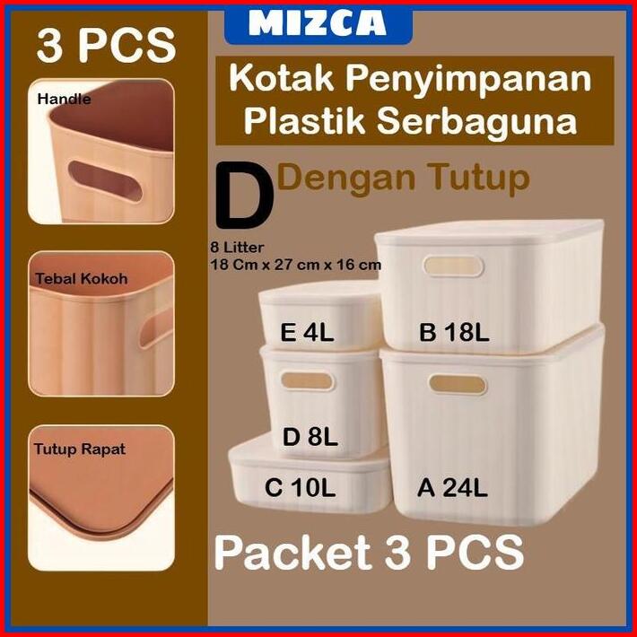 Mizca Kotak Penyimpanan Plastik Susun Dengan Tutup Type D 8 Liter 3 Pcs 18 X 27 X 16 Cm Storage Box Container Bin Pantry