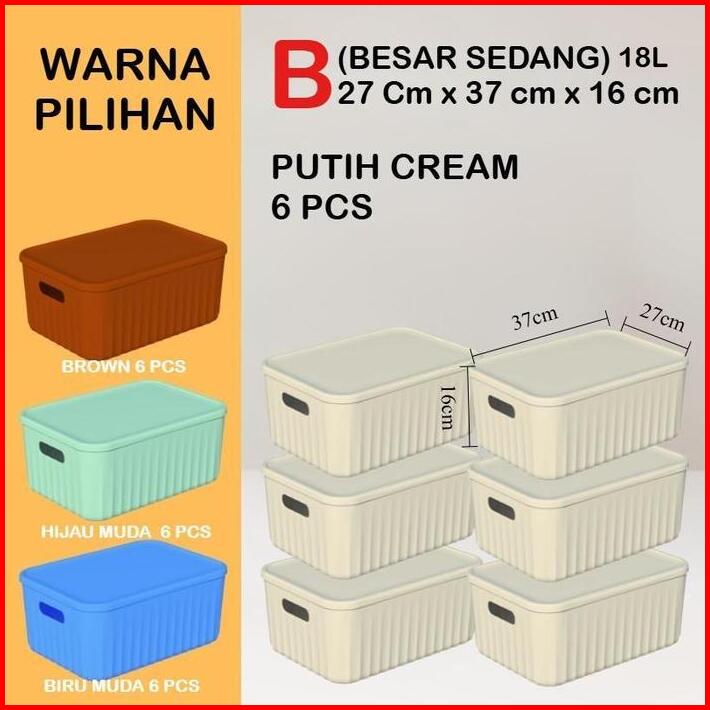 Mizca Kotak Penyimpanan Plastik Susun Dengan Tutup Type B 18 Liter 6 Pcs 27 X 37 X 16 Cm Storage Box Container Bin Pantr