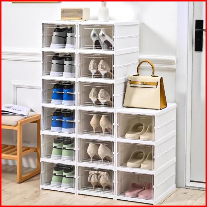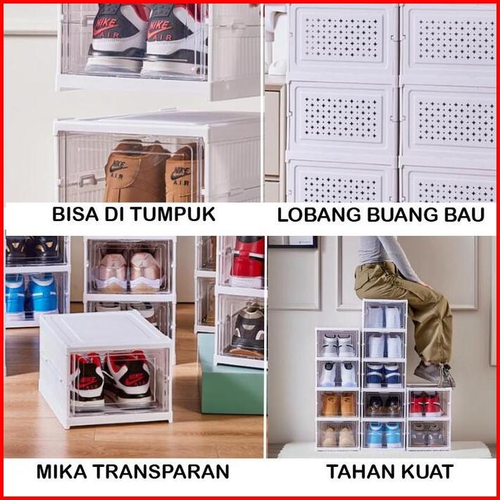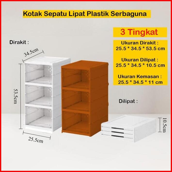 Mizca Rak Sepatu Lipat Plastik Serbaguna 3 Susun Kotak Sepatu Tebal Kokoh Pintu Transparan Lemari Susun Box Display Main