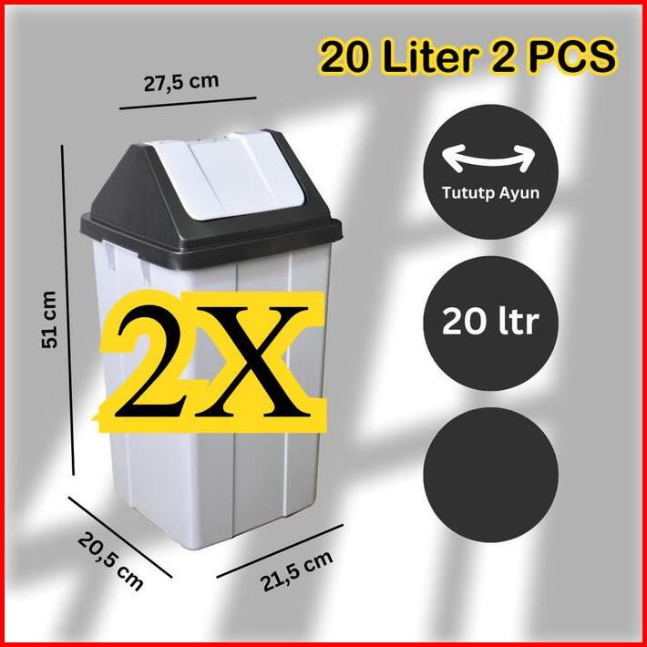 Mizca Tempat Sampah 20 Liter 2 Pcs Haneda Tempat Sampah Plastik Goyang Tong Sampah Tutup Ayun Rubbish Bin