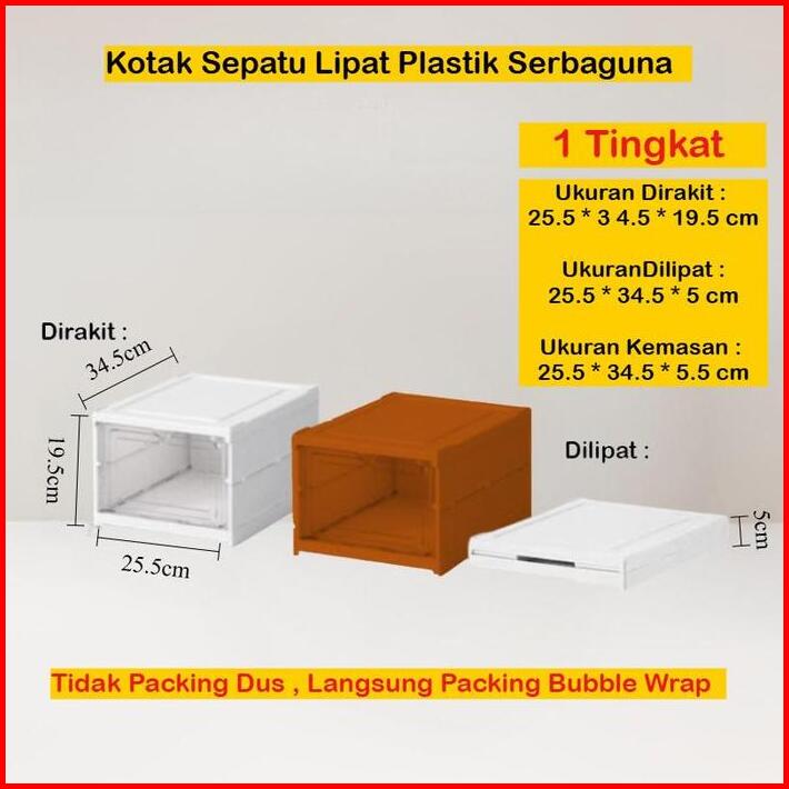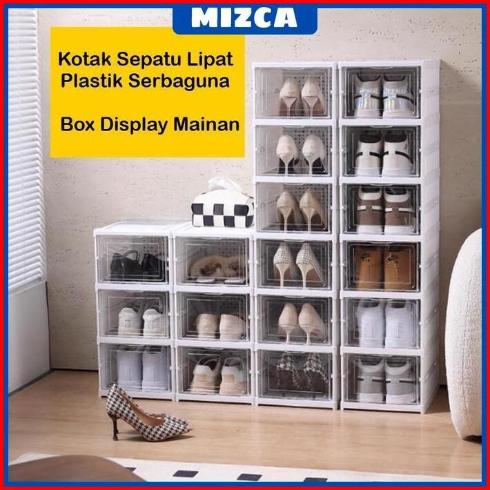 Mizca Rak Sepatu Lipat Plastik Serbaguna 1 Susun Kotak Sepatu Tebal Kokoh Pintu Transparan Lemari Susun Box Display Main