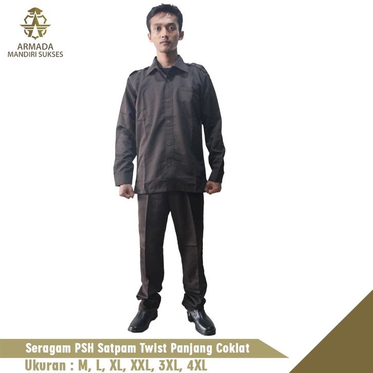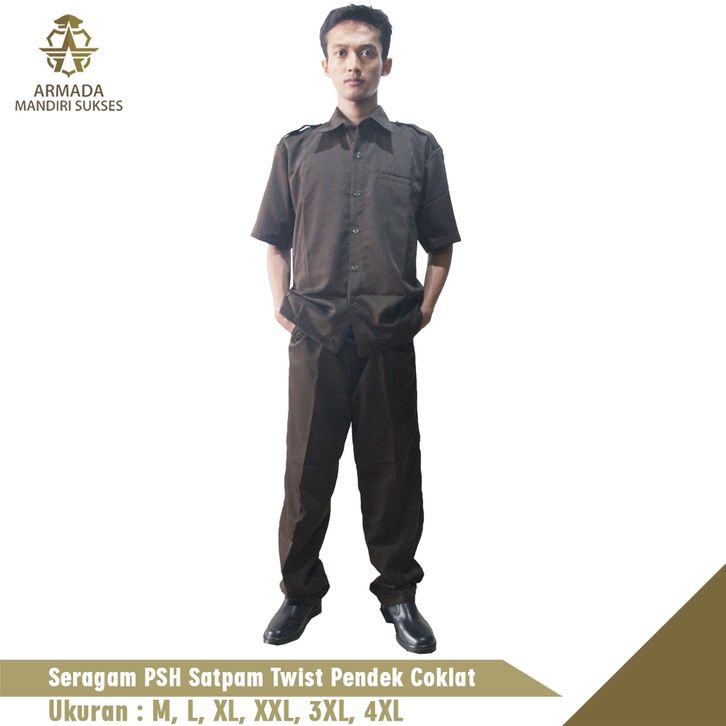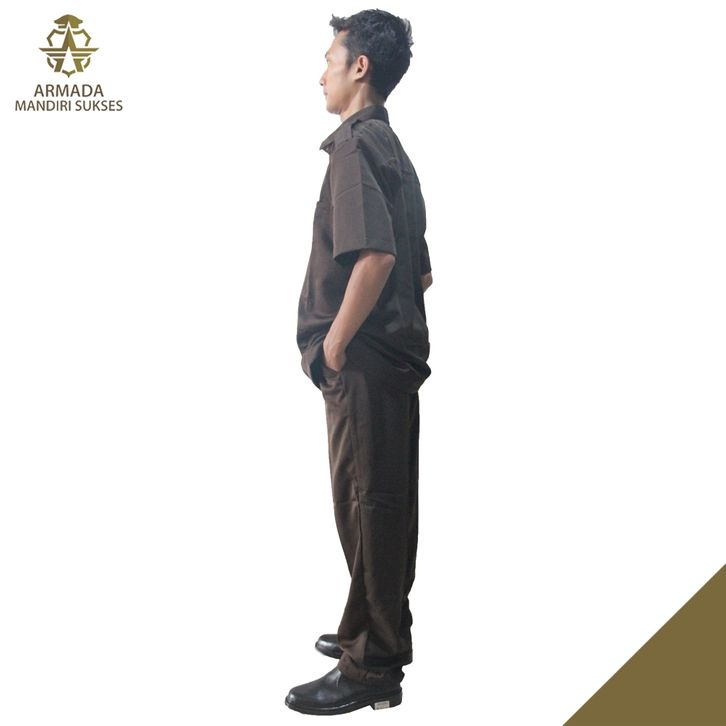 Seragam Safari Twist PSH Lengan Panjang Dan Lengan Pendek l Seragam Satpam Kantor l Coklat asimns