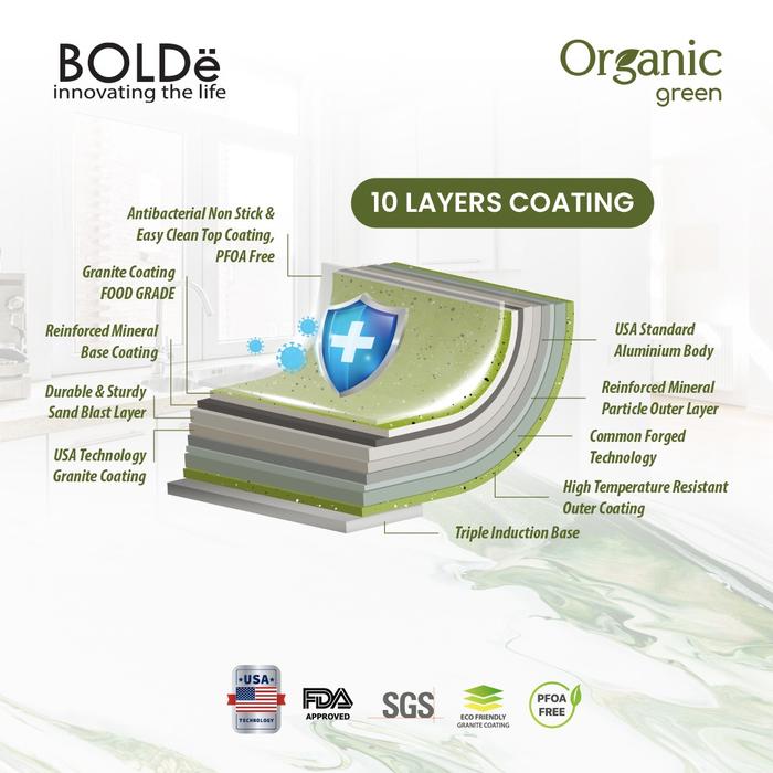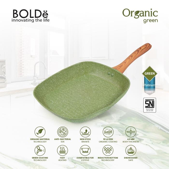 Wajan Organic Green Grill Pan 28 cm (Teflon / Panci Panggang Anti Lengket)