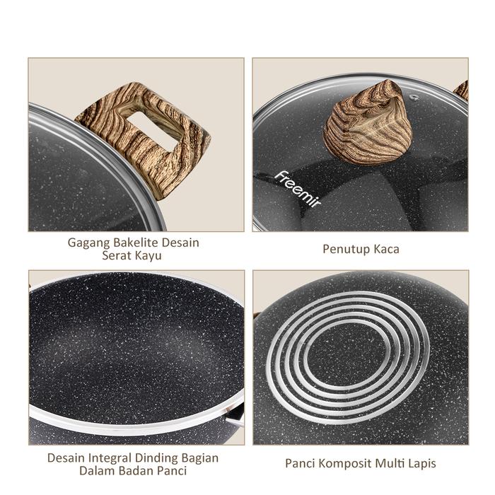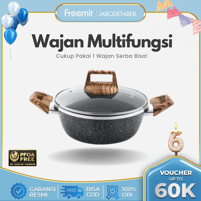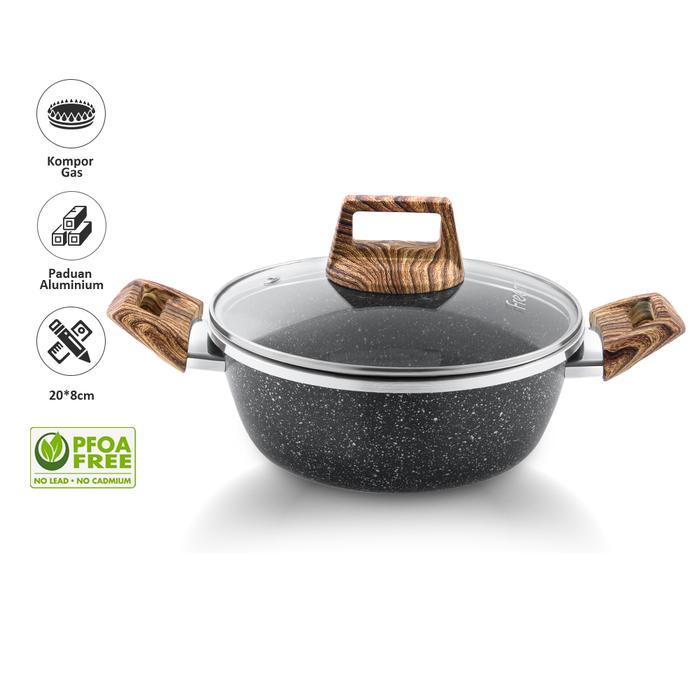 Wajan MasihNgekost freemir Wajan 20 cm Batu Granit Wajan Anti Lengket Tutup Kaca Premium Single
