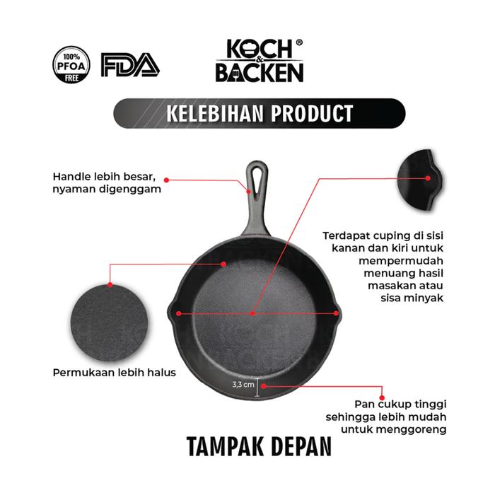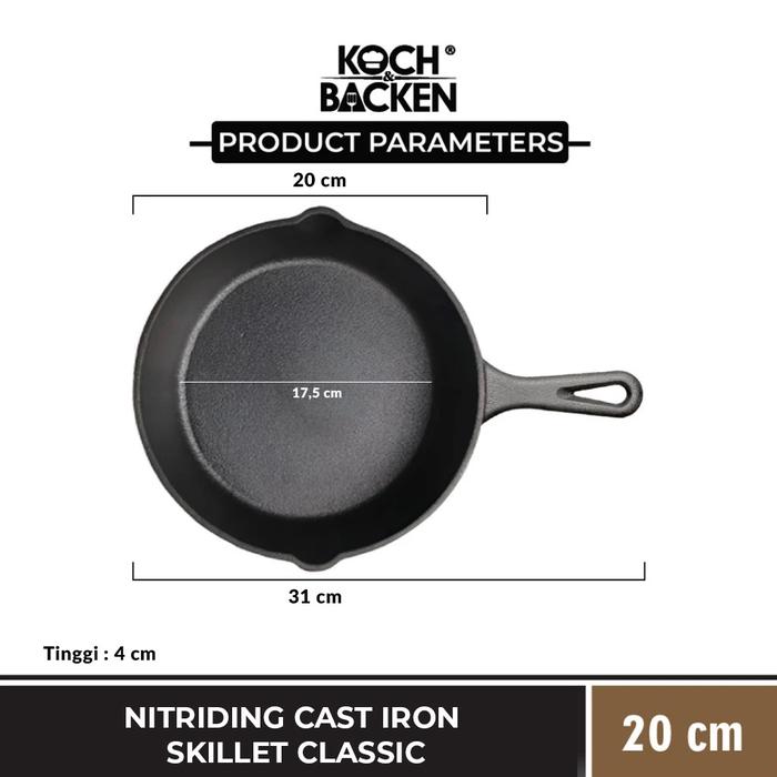 Wajan KOCH&BACKEN Nitriding Pre-seasoned Cast Iron Skillet Fry Pan 20cm - Wajan Panggangan Besi Cor