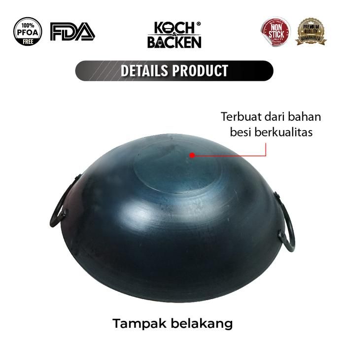 Wajan KOCH&BACKEN Black Carbon Steel Classic Wok 32cm Wajan Baja Preseasoned
