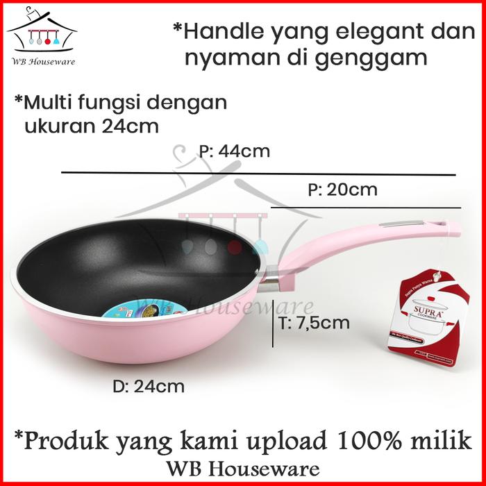 Wajan mini wok 24cm supra pastel pink / panci penggorengan anti lengket Peralatan Masak
