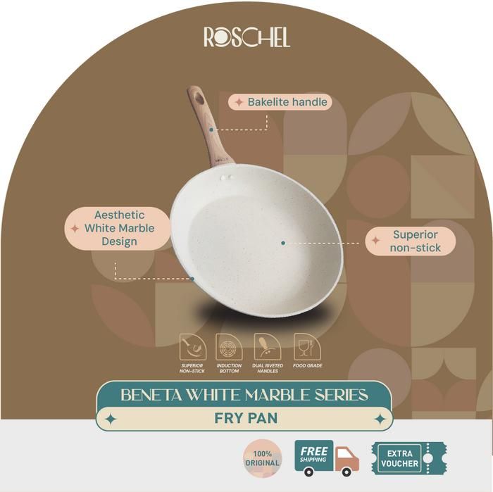 Wajan Roschel Beneta White Marble Coating Non-Stick Frypan 18 , 20 , 22 , 24 , 26 , 28 cm Panci