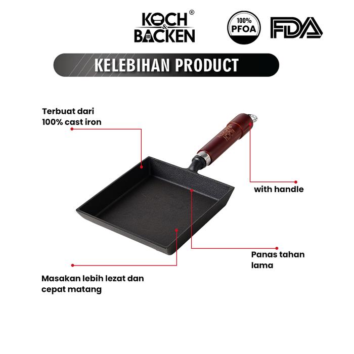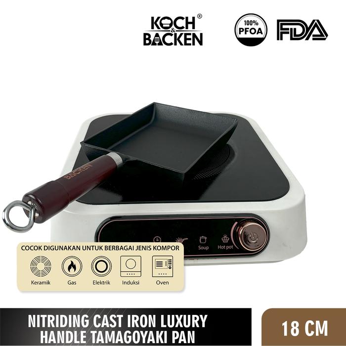 Wajan KOCH&BACKEN Nitriding Pre-seasoned Cast Iron Tamagoyaki Pan 18cm Luxury Handle Wajan