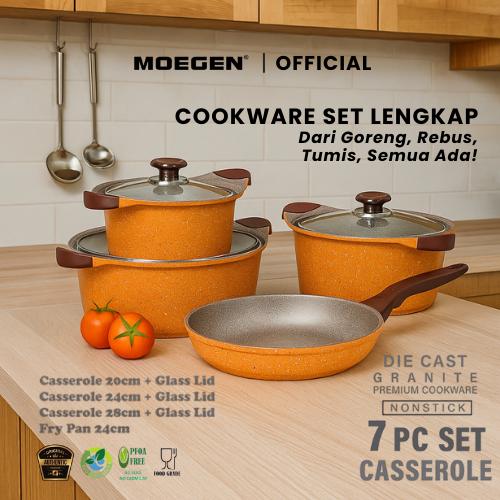 Wajan MOEGEN 7pcs Granite Series Casserole n Fry Pan Anti Lengket