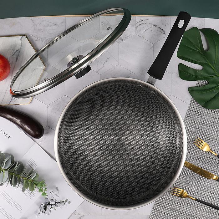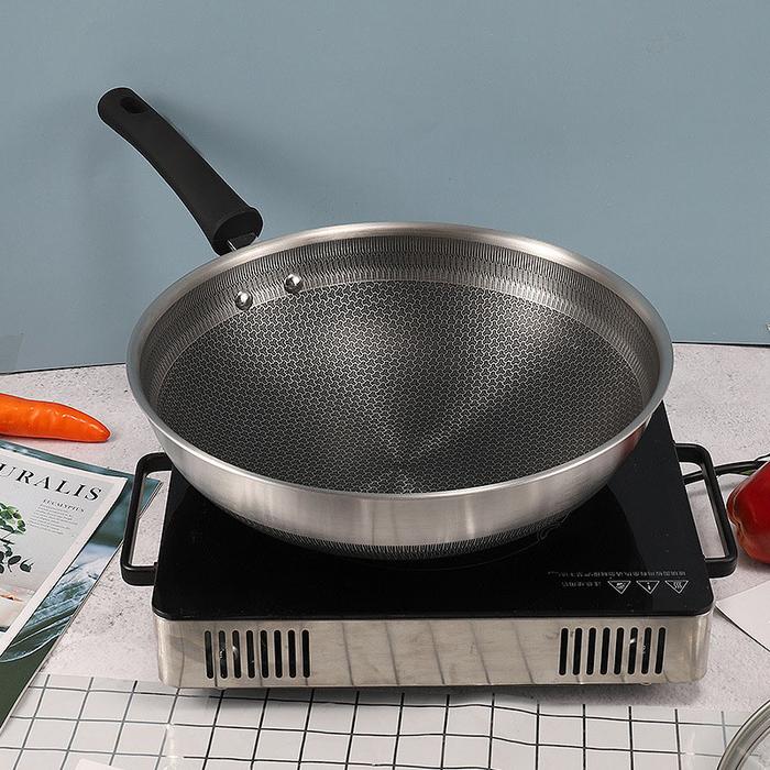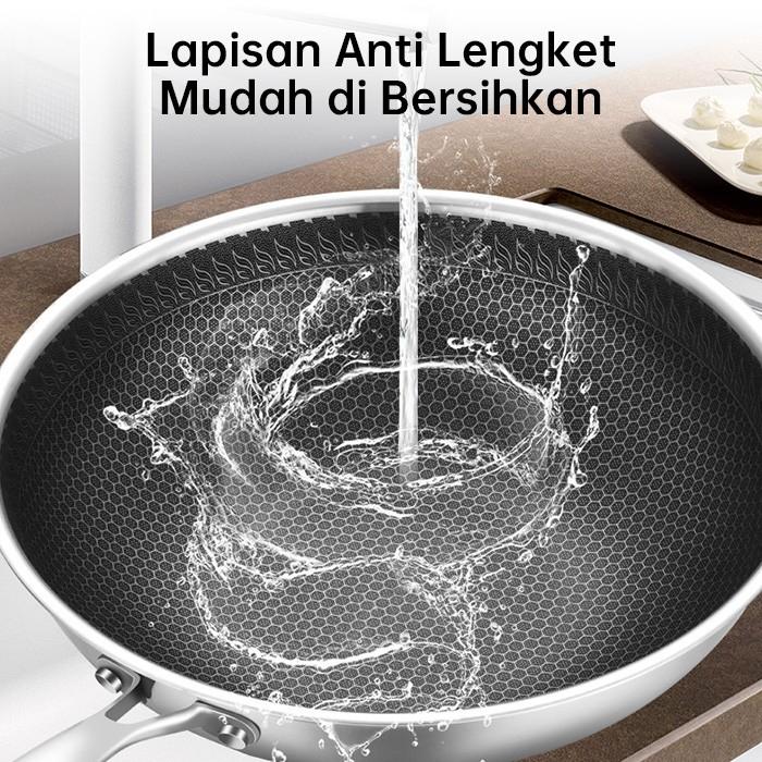 Wajan QME - Wajan Penggorengan Dengan penutup Gagang Hitam Laba Tahan Panas panci Stainless Steel