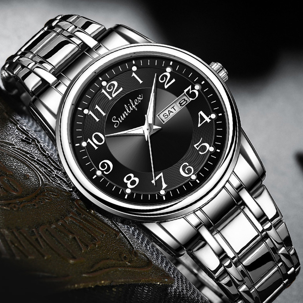 [Star] Jam Tangan Pria / Jam Tangan Pria Anti Air / Sunlifex Jam Tangan Pria Kuarsa Kalender Klasik Santai Tali Stainles