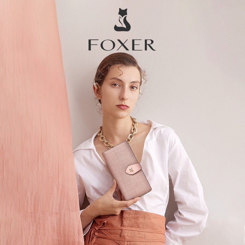 FOXER Dompet Panjang Kulit Sapi Wanita Dompet Motif Fashion Tempat Koin Dan Kartu Kredit Multifungsi