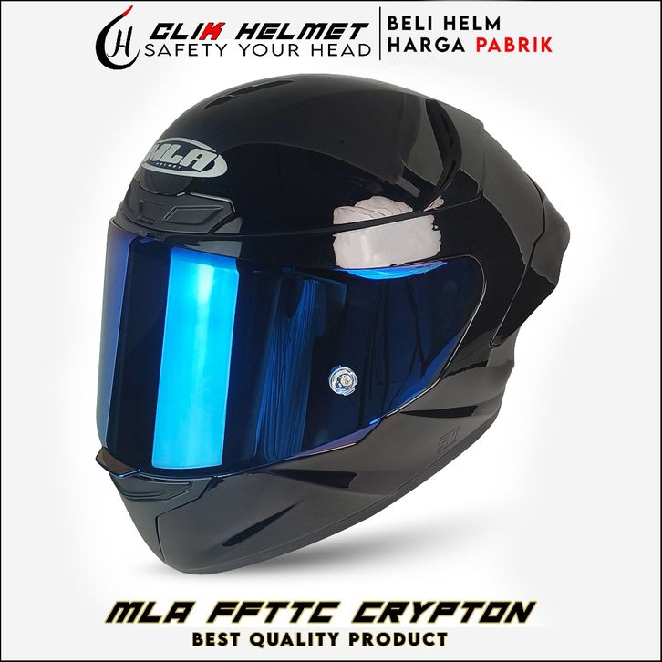 Helm Full Face | miliA CRYPTON HITAM DOF KACA BLUE | Helm Pria Dan Wanita Dewasa Paket Ganteng SNI