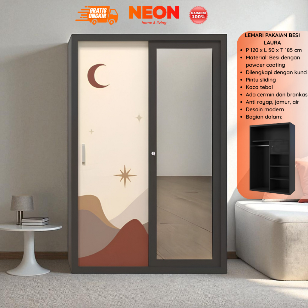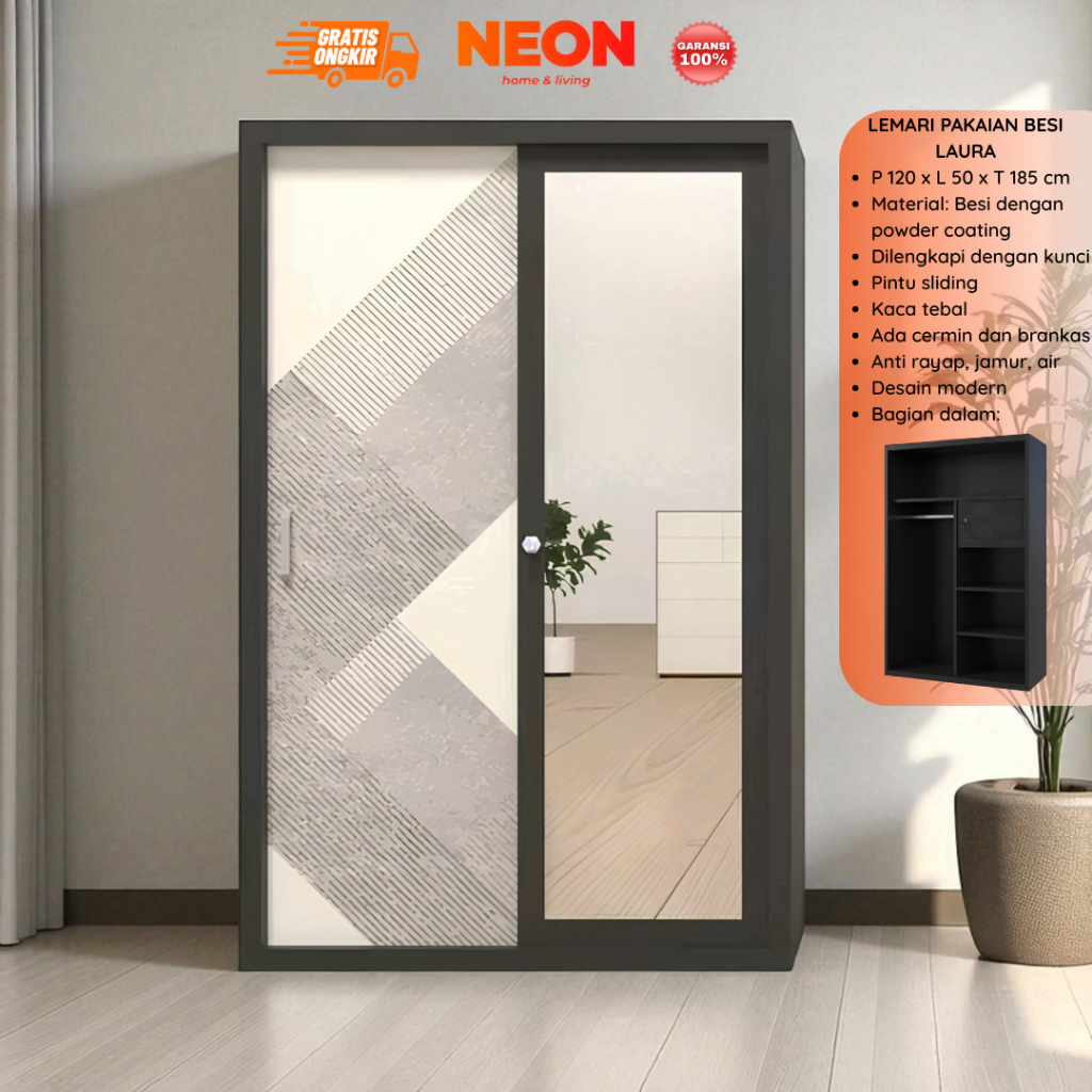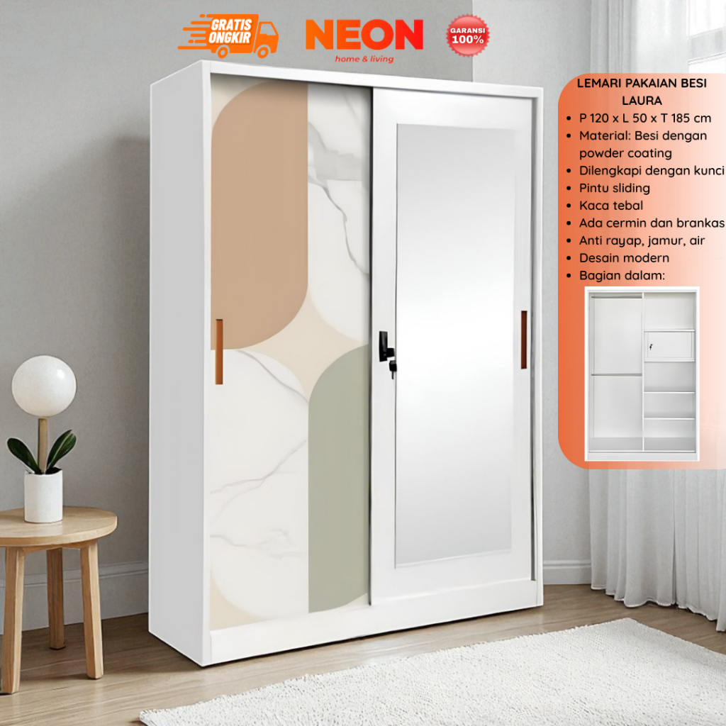 LEMARI SLIDING LEMARI PAKAIAN BESI LAURA MINIMALIS MURAH ANTI RAYAP LEMARI BAJU SLEDING TERMURAH FREE ONGKIR
