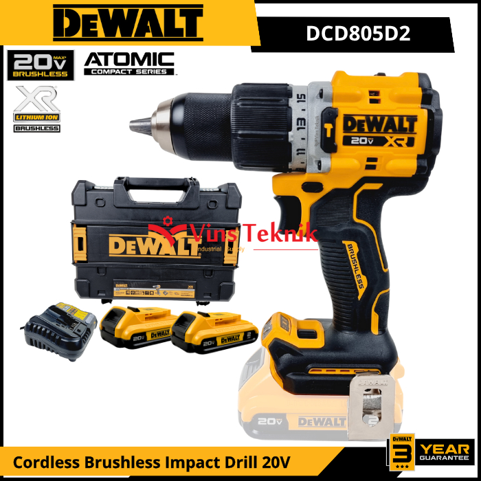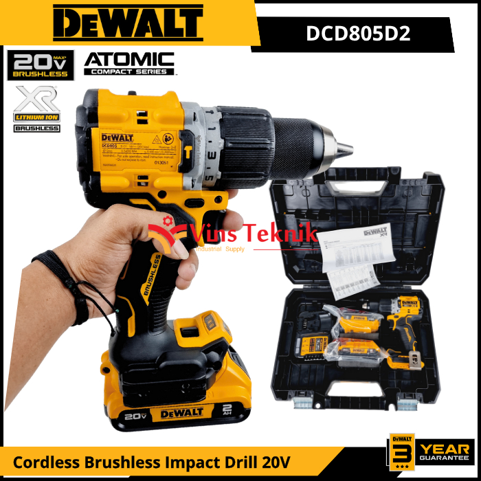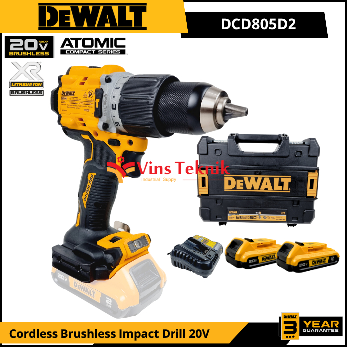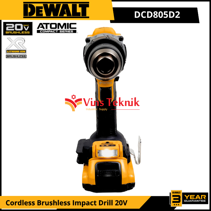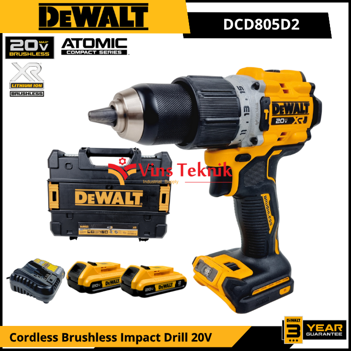DEWALT DCD805D2 Mesin Bor Baterai Cordless Brushless Impact Drill Hammer Drill 13MM 20V DCD805 DCD 805