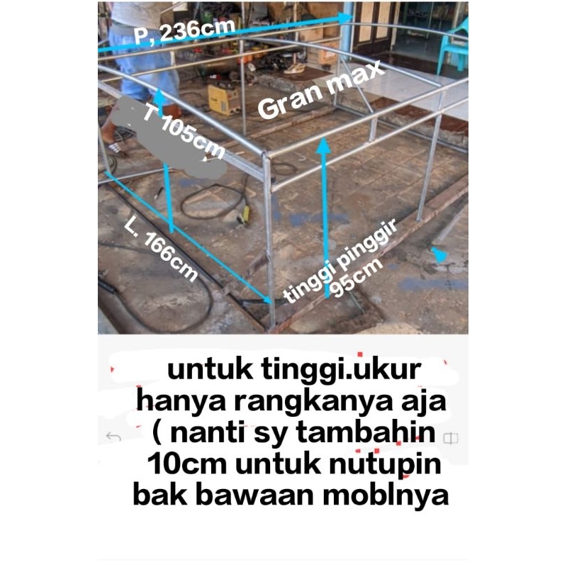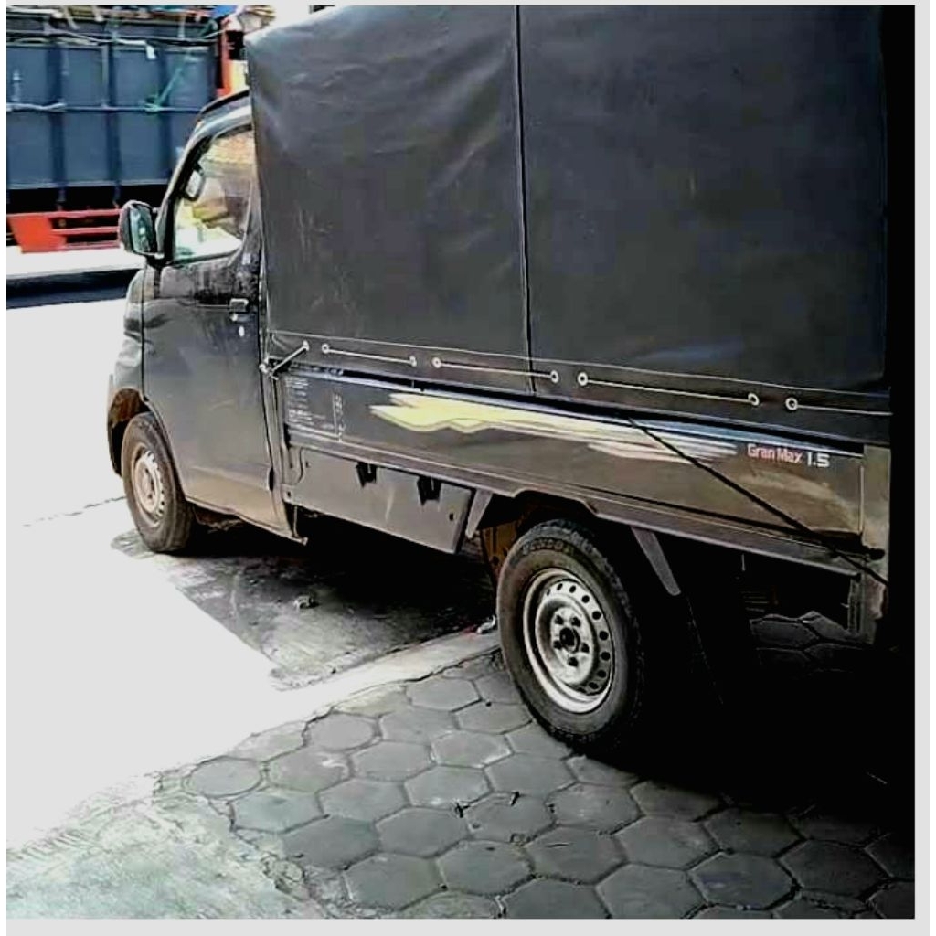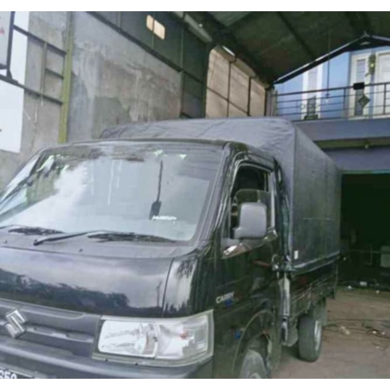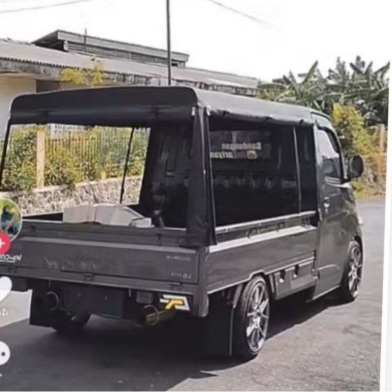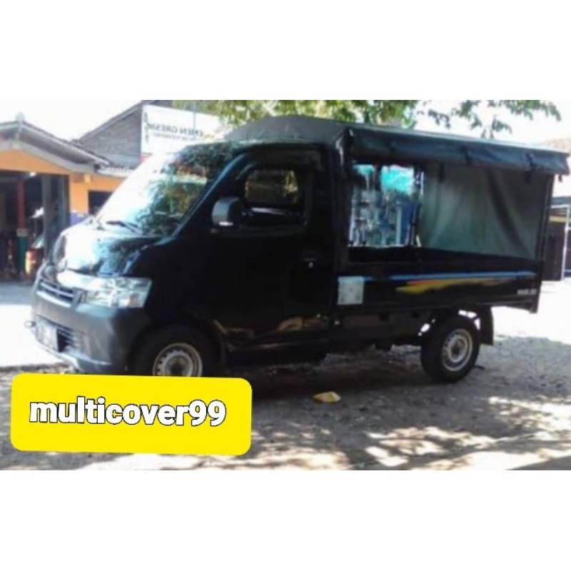 terpal tenda mobil krodong pickup, granmax, newcarry, bukaan belakang dan kiri kanan belakang pakai resleting