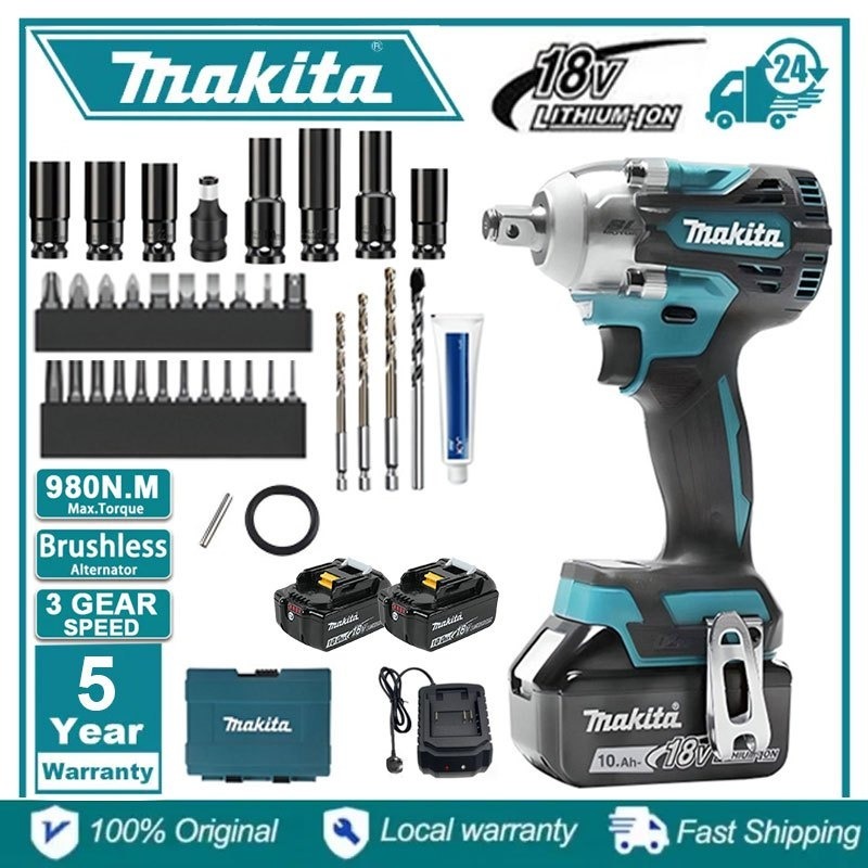 Makita DTW28518V2 Kunci guncangan nirkabel, dua baterai, diimpor dari Jepang, cocok untuk baut sekrup besar,