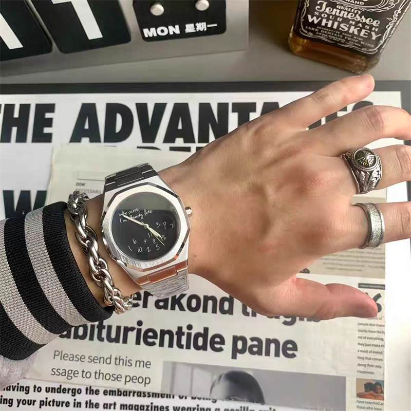Jam tangan pria tanpa logo - Kreatif, unik, dengan angka, desain grafiti, pola, kecil kalangan, gaya ins, desain, jam ku
