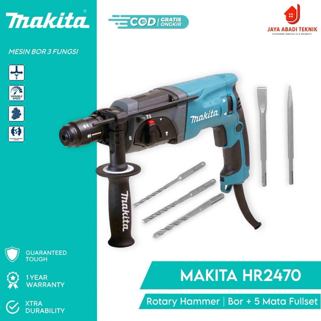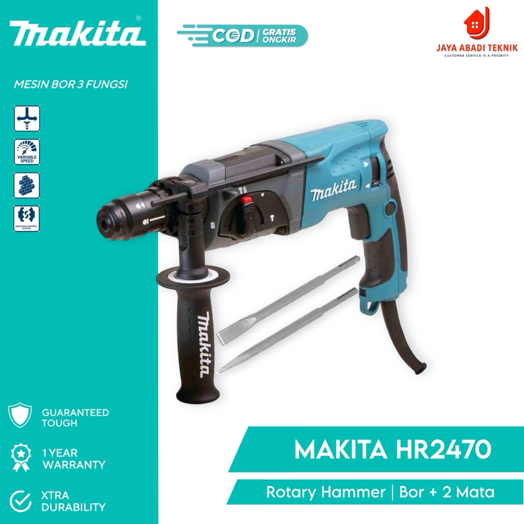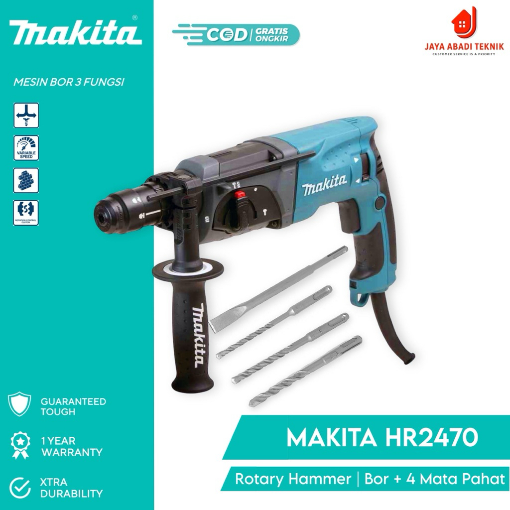 BOR BOBOK SDS MAKITA HR2470 DENGAN 3 FUNGSI HAMMER DRILL (NEW100% REAL SESUAI GAMBAR) Bonus Mata