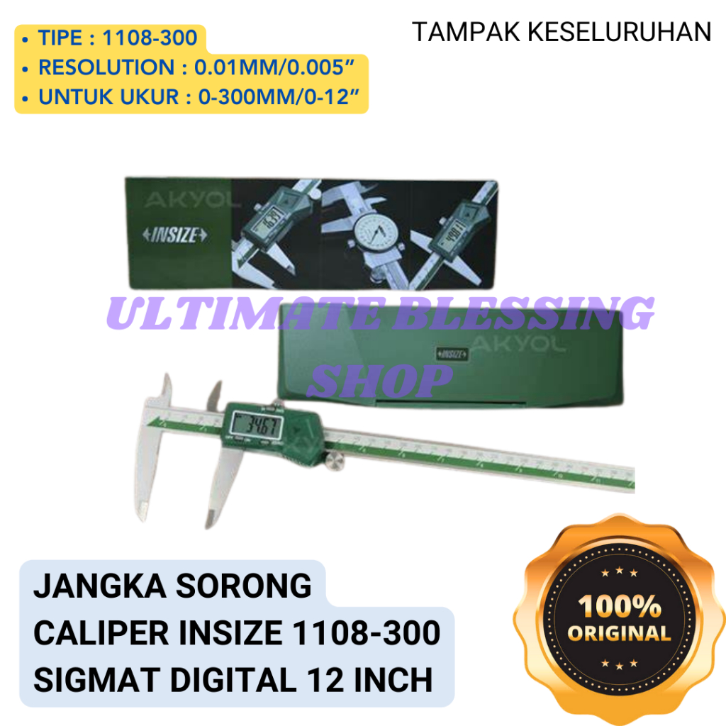 INSIZE 1108-300 Sigmat Digital 12 Inch 300 mm - Jangka Sorong Vernier Caliper Original Berkualitas - ULTIMATE BLEESING
