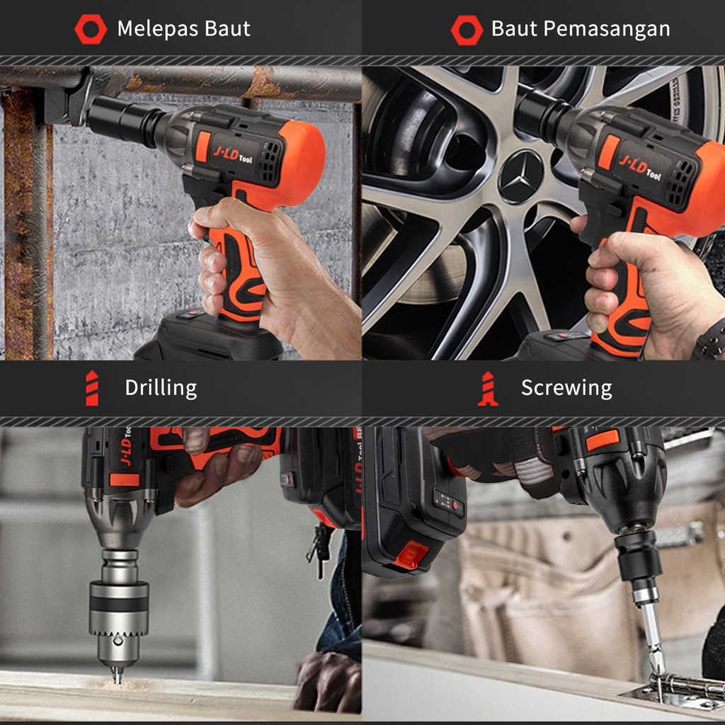 [Mall Mesin Bor Impact Multifungsi Apr Baterai JLD Impact Wrench brushless 88VF 13mm 350NM Impac roda mobil motor Bosch