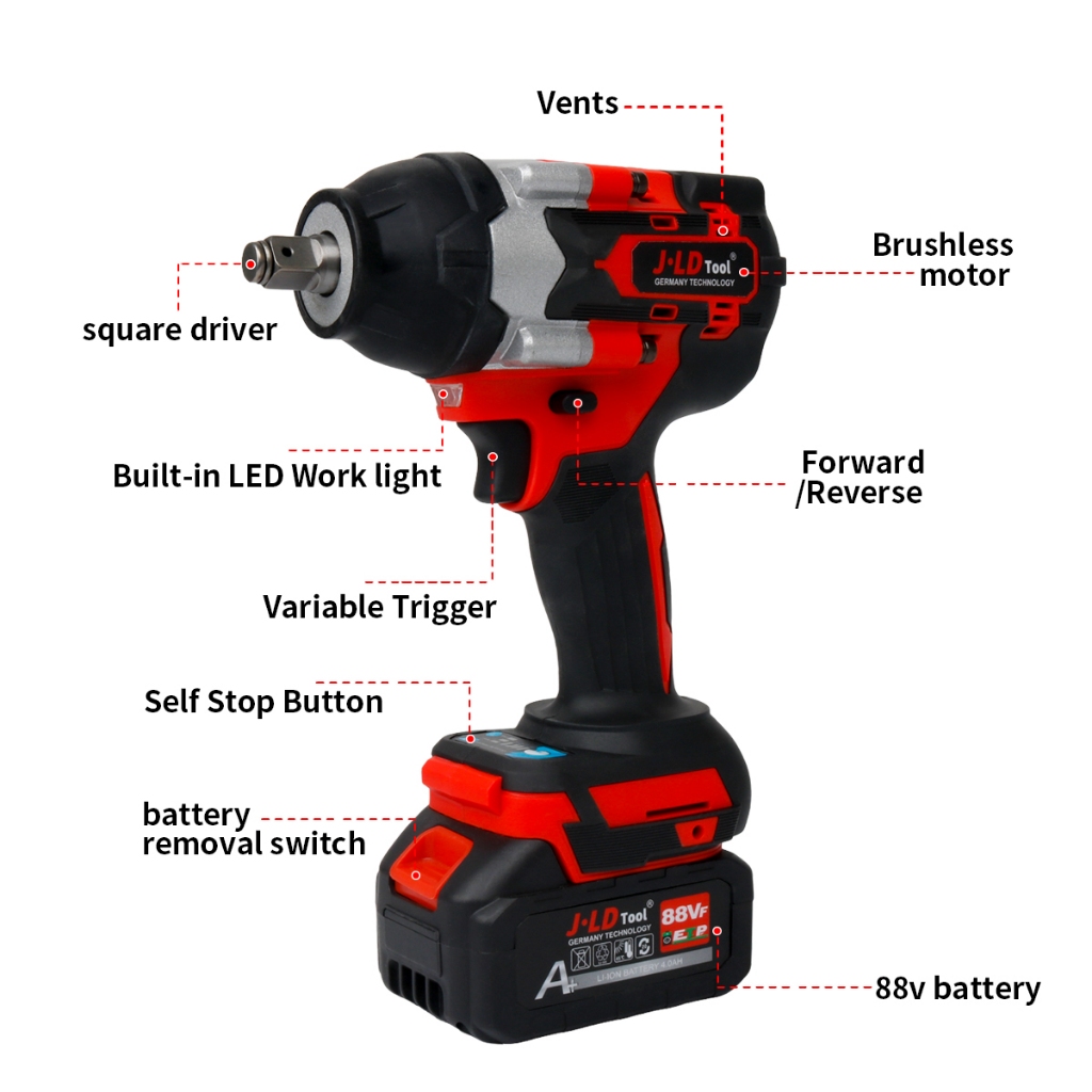 JLD 700NM Impact Jumbo Brushless 88VF Mesin bor Impact Baterai Torsi besar Impact Wrench cordless
