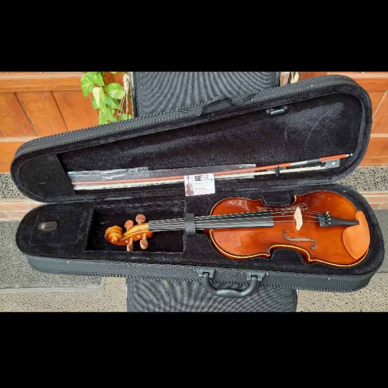Biola Violin Pemula Beginner Shifen 401 Upgrade Tailpiece Fine Tuner Fitting Up Bridge Soundpost Ukuran Size 4/4