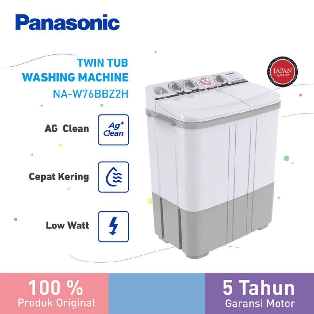 mesin cuci - mesin cuci 2 tabung - Panasonic NA-W76BBZ2H Mesin Cuci 2 Tabung Low Watt [7.5 Kg] - Grey