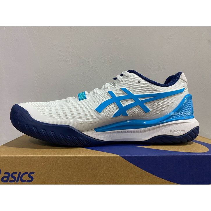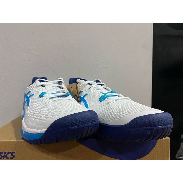 Sepatu Tenis Asics Gel Resolution 9 Men White/Digital Aqua