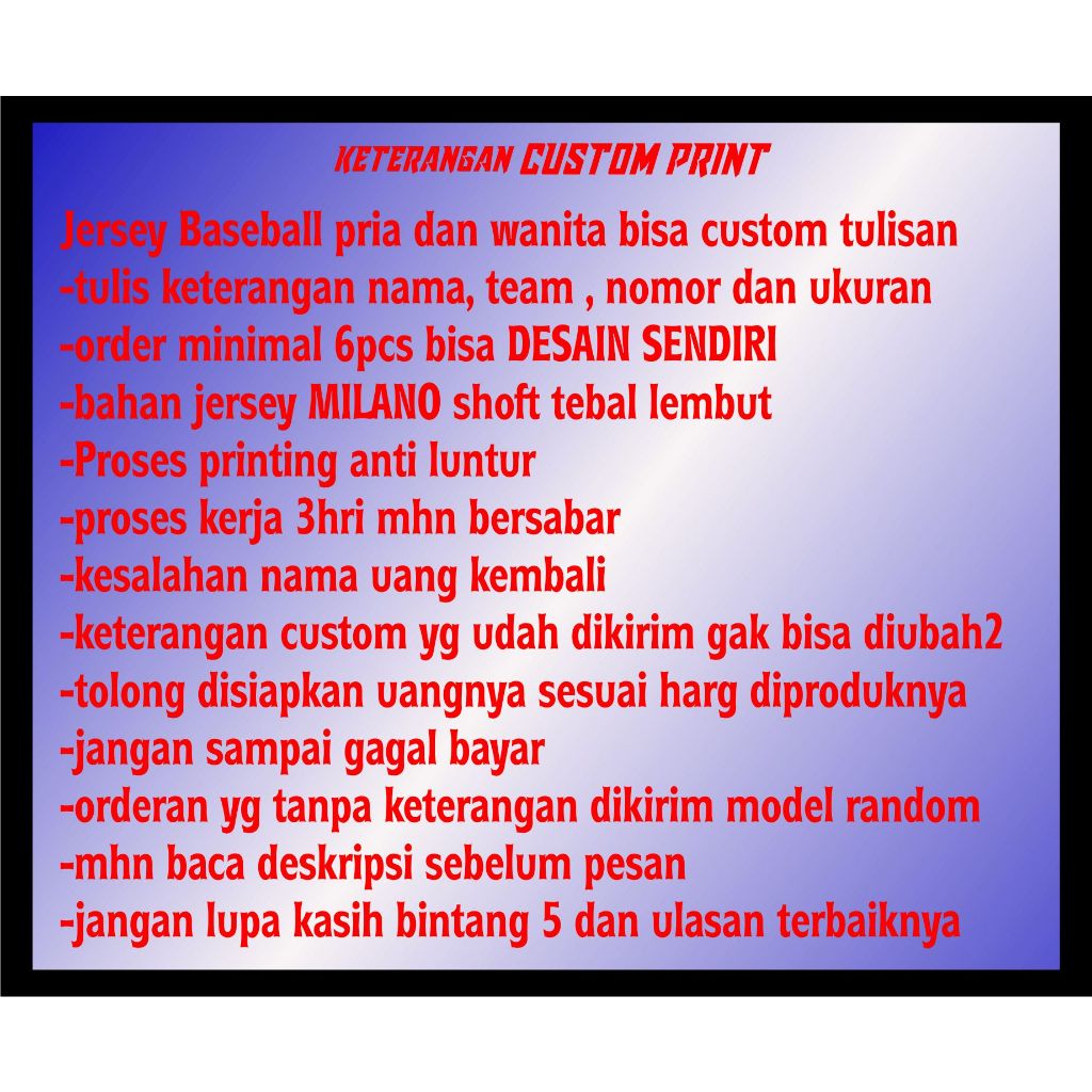 BAJU JERSEY BASEBALL PRIA WANITA PRINTING CUSTOM NAMA , NOMOR , DAN TEAM