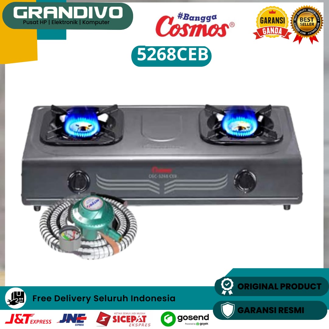 FREE SELANGREGULATOR COSMOS KOMPOR GAS 2 TUNGKU CGC-5268 CEB/CGC 5268 CEB/CGC5268CEB GARANSI RESMI - GRANDIVO