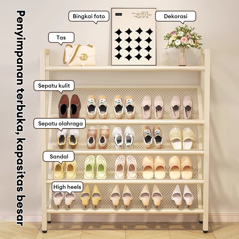 Rak Sepatu Model Sekarang Tertutup Besi Gantung Kaca Kayu Best Seller Susun Minimalis Lipat Estetik Multifungsi 5 Susun