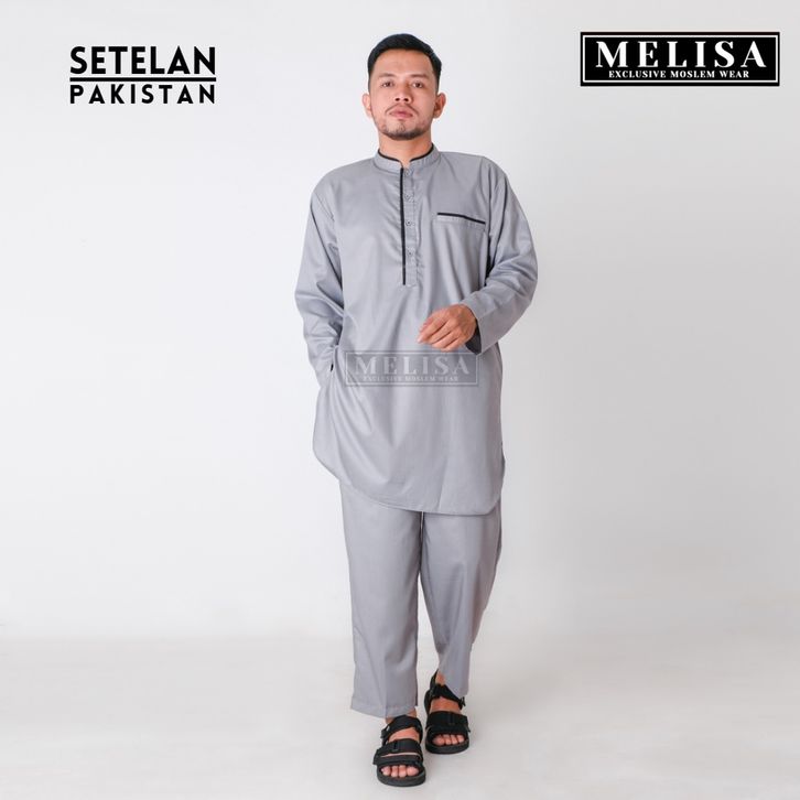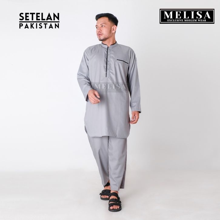 TERBARU Baju Koko Pria Setelan Kurta Pakistan Dewasa Lengan Panjang Bahan Katun Toyobo Warna Abu Putih Navy Dan