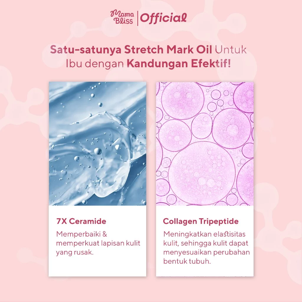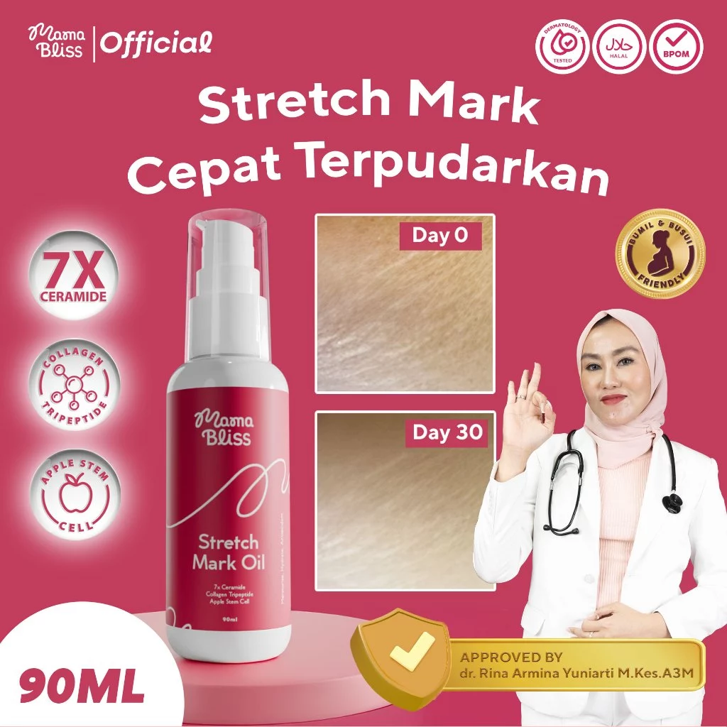 MamaBliss STRETCH MARK OIL 90ml - Pudarkan Stretch Mark Selulit Bekas Luka mengandung 7X Ceramide & Apple Stem Cell