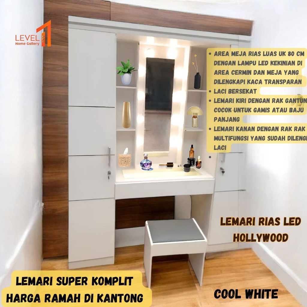 [Mall] PROMO MEJA RIAS PLUS LEMARI LAMPU LED HOLLYWOOD 2 PINTU MARBLE MULTIFUNGSI 2IN1 AESTHETIC BISA CICILAN TANPA DP