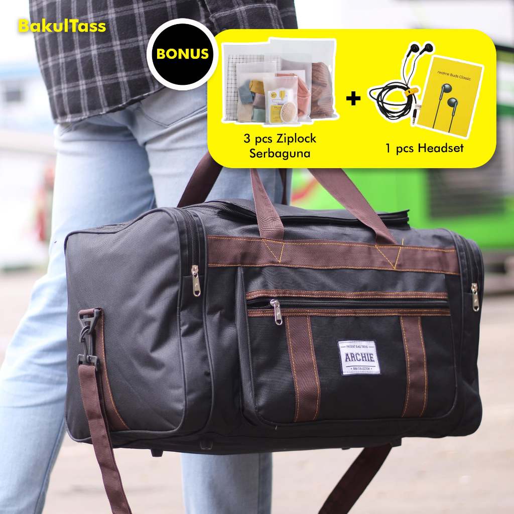TAS BAJU Tas Travel Hitam ARCHIE Tas Jinjing Liburan Besar Travelling Mudik Kerja Ada Tumpuan Tas Perjalanan Pria Wanita Fashion Travel Bag Duffel