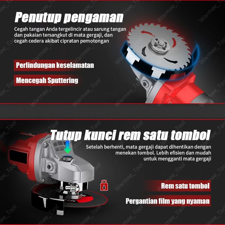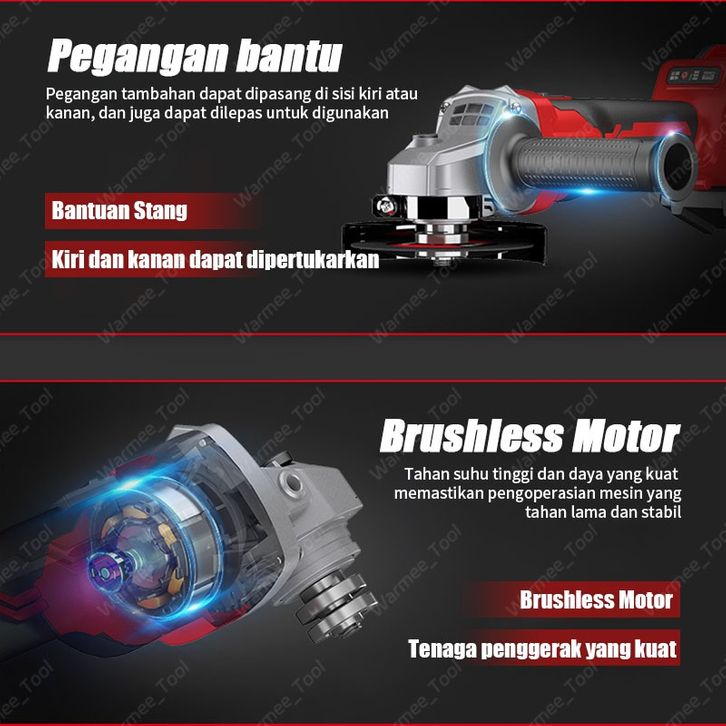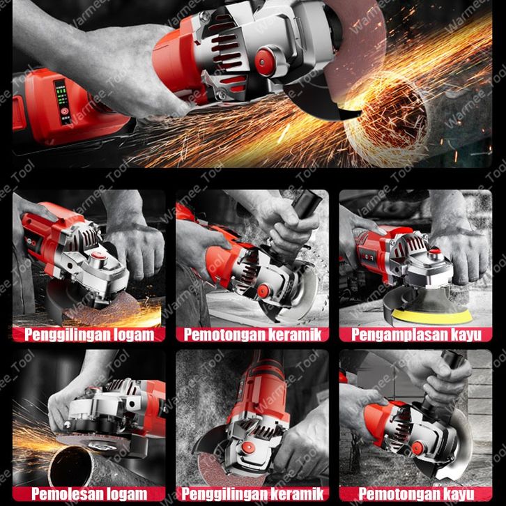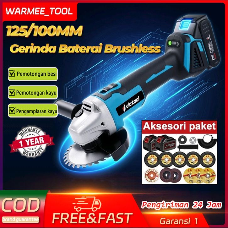 WARMEE Gerinda Baterai Brushless 100/125MM Gerinda Listrik Makita Tangan Cordless Angle Grinder Mesin