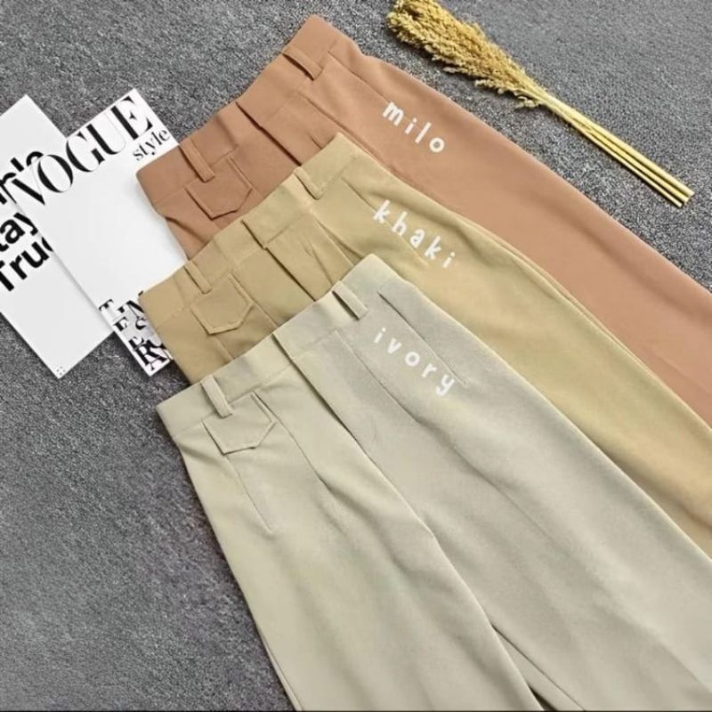 ORO PANTS KNIT PREMIUM Highwaist Tebal Anti Kusut - Loose Pants Trousers Wanita - Celana Kantor Wanita - Kulot Panjang