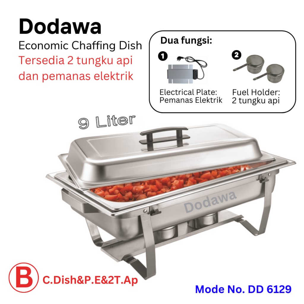 Chafing Dish Elektrik & Gas 9 Liter / Alat penghangat makanan prasmanan / tempat makan buffet stainless / chauving dish